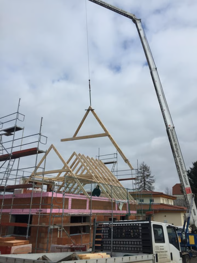 - Abbinden und Richten von Dachstühlen (von Einfamilienhäusern bis hin zu Mehrfamilienhäusern und Bürogebäuden)