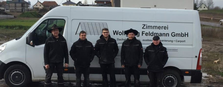 Seit über 30 Jahren leitet der Zimmerermeister Wolfgang Feldmann das Unternehmen und hinter jedem Unternehmer steht ein starkes Team aus Zimmerermännern und Dachdeckern. Derzeit beschäftigen wir zwei Meister, eine Bauingenieurin, drei Zimmermänner und drei Auszubildende.